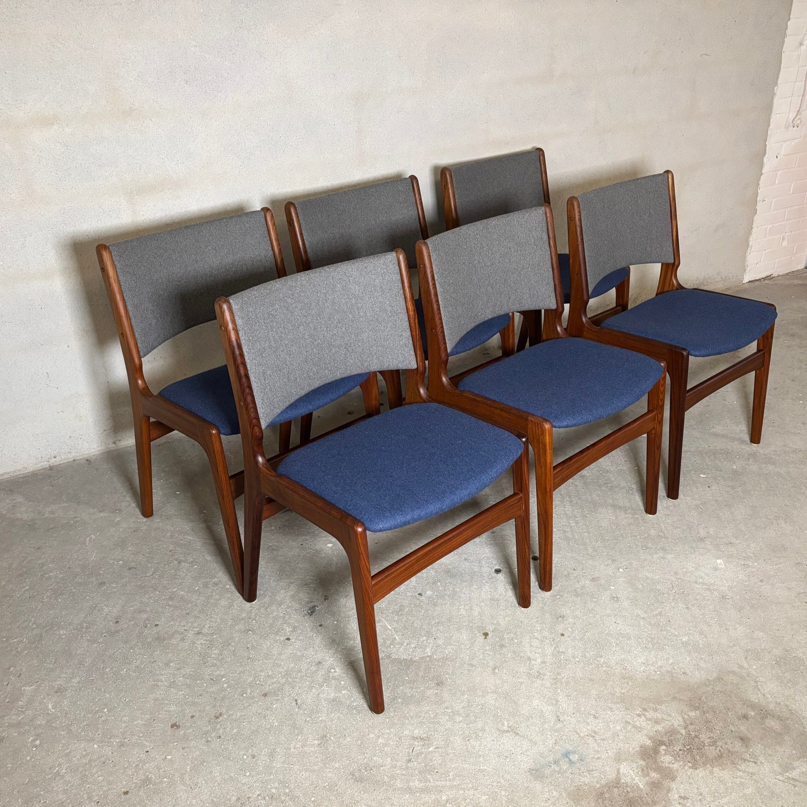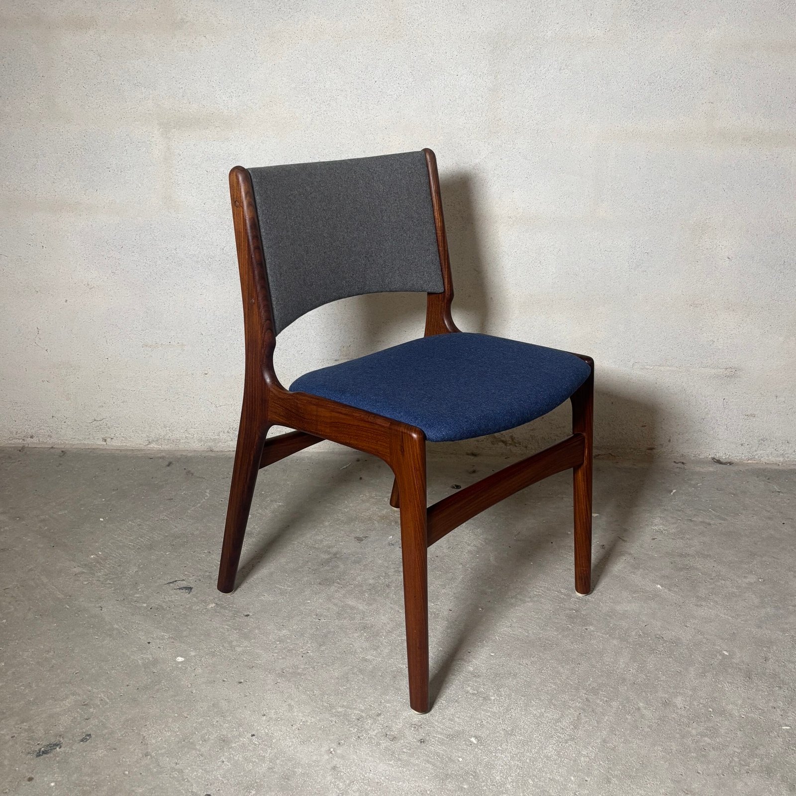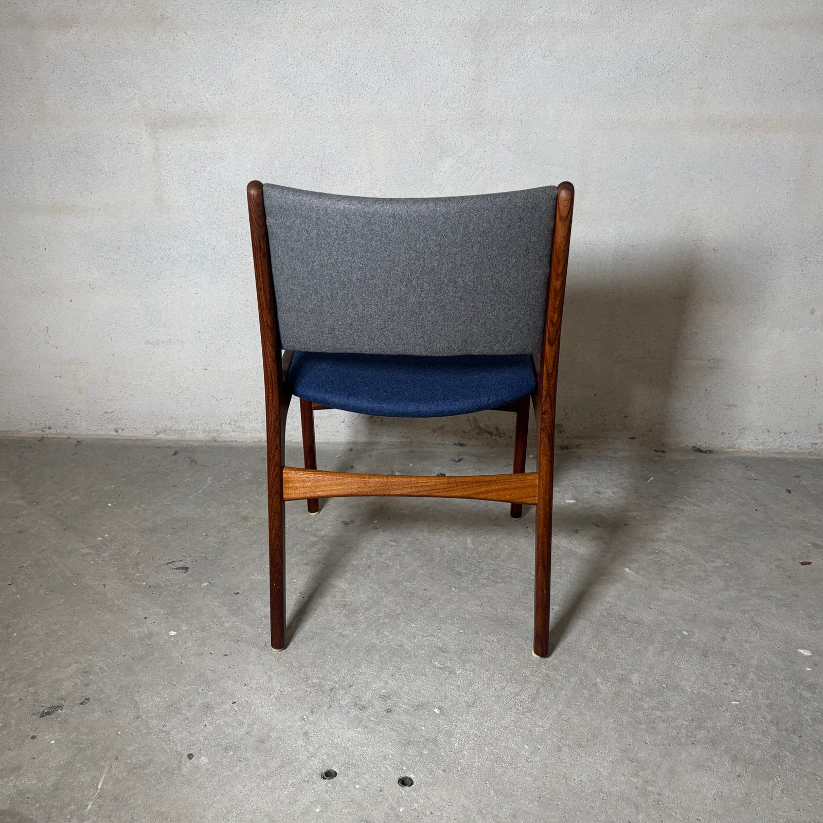Restored Model 89 dining chairs designed by Erik Buch, a strong and recognizable example of Danish modern design. Celebrated for their refined lines, solid construction, and excellent seating comfort.