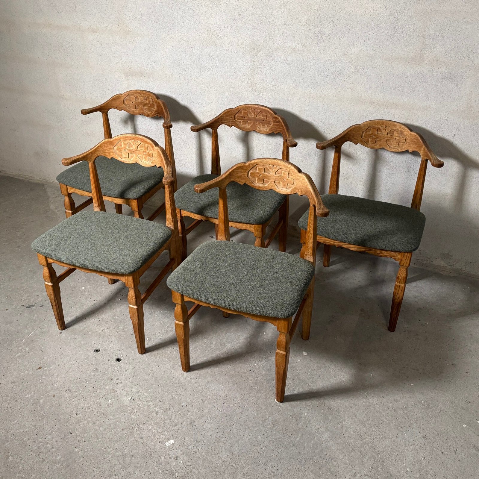 Set of 5 Henning Kjærnulf Dining Chairs — Oak, 1960s