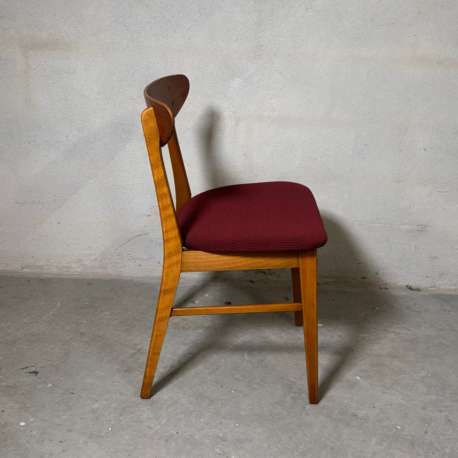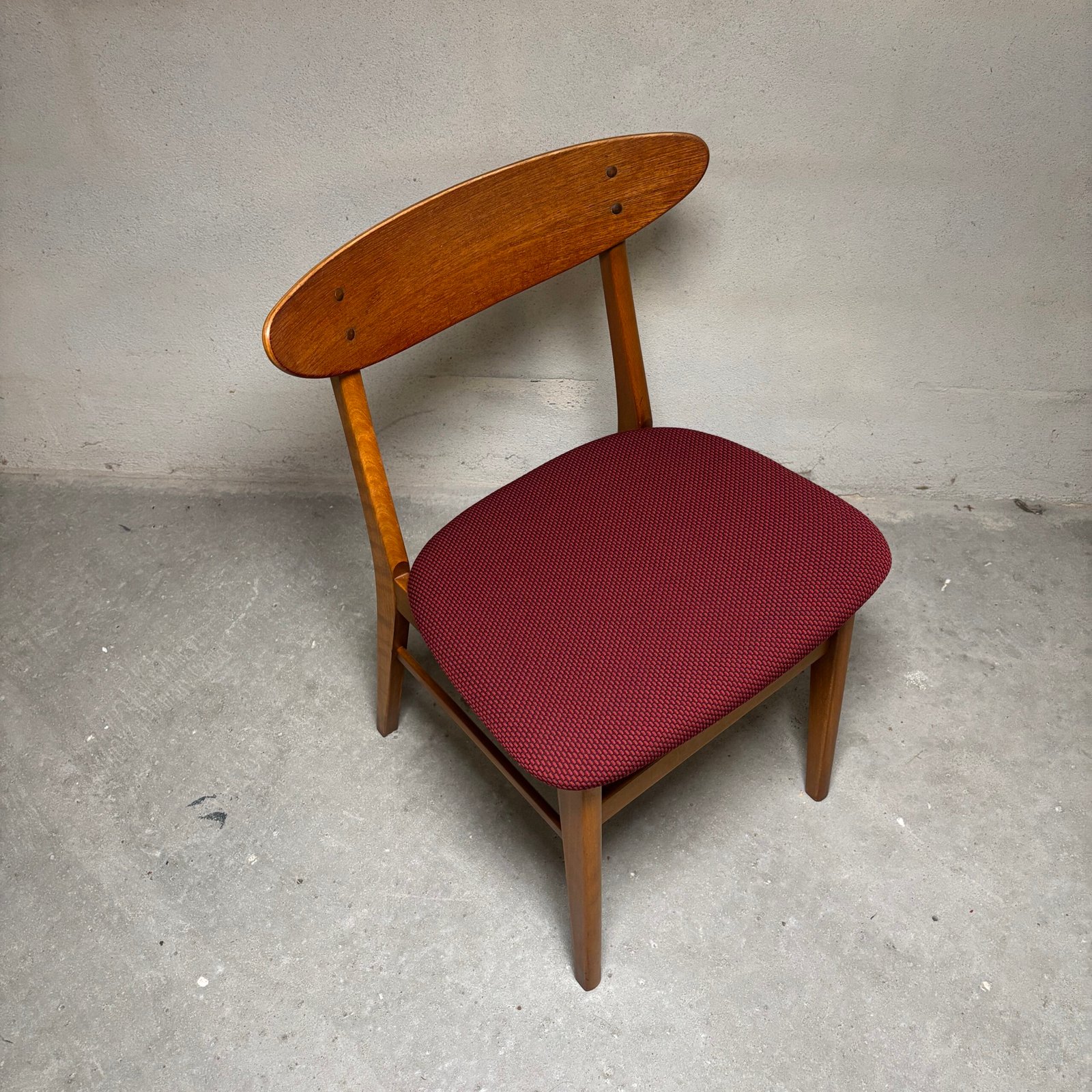 A set of 6 classic Farstrup Model 210 dining chairs, designed in Denmark, featuring beautifully curved teak veneer backrests that highlight the rich grain and warm tones of the wood. Complemented by sturdy beech frames, this set is a true Danish classic.